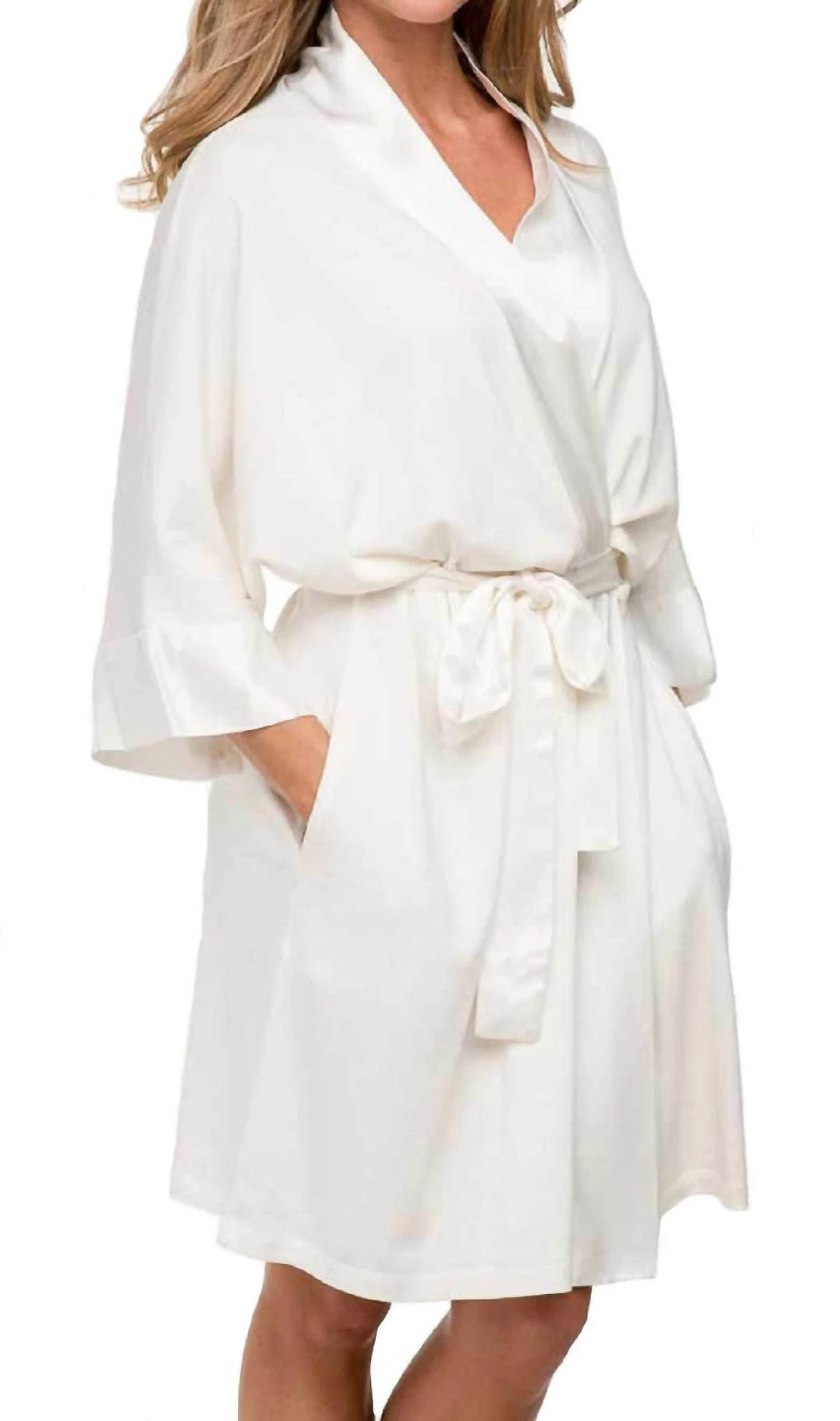 Best deal ๐ฅฐ Pj Harlow ๐ฉ women Shala Knit Robe With Pockets And Satin Trim in Pearl ๐